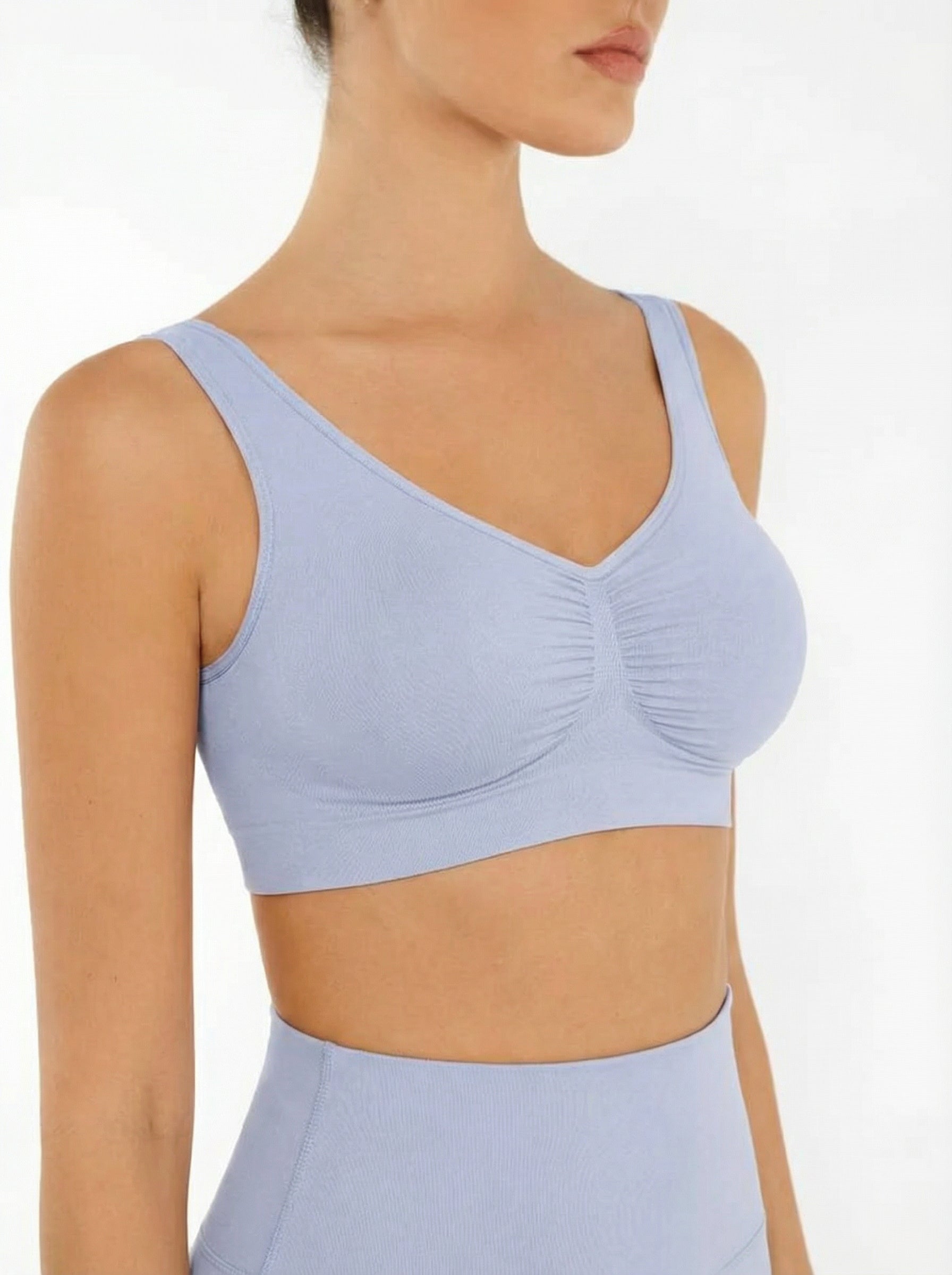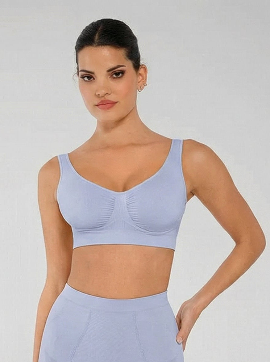החזייה תומכת בחזה בעדינות מלמטה בעזרת אזור מחוזק מתחת לחזה, ומעניקה תחושת יציבות נעימה בלי ברזלים ובלי ריפוד.