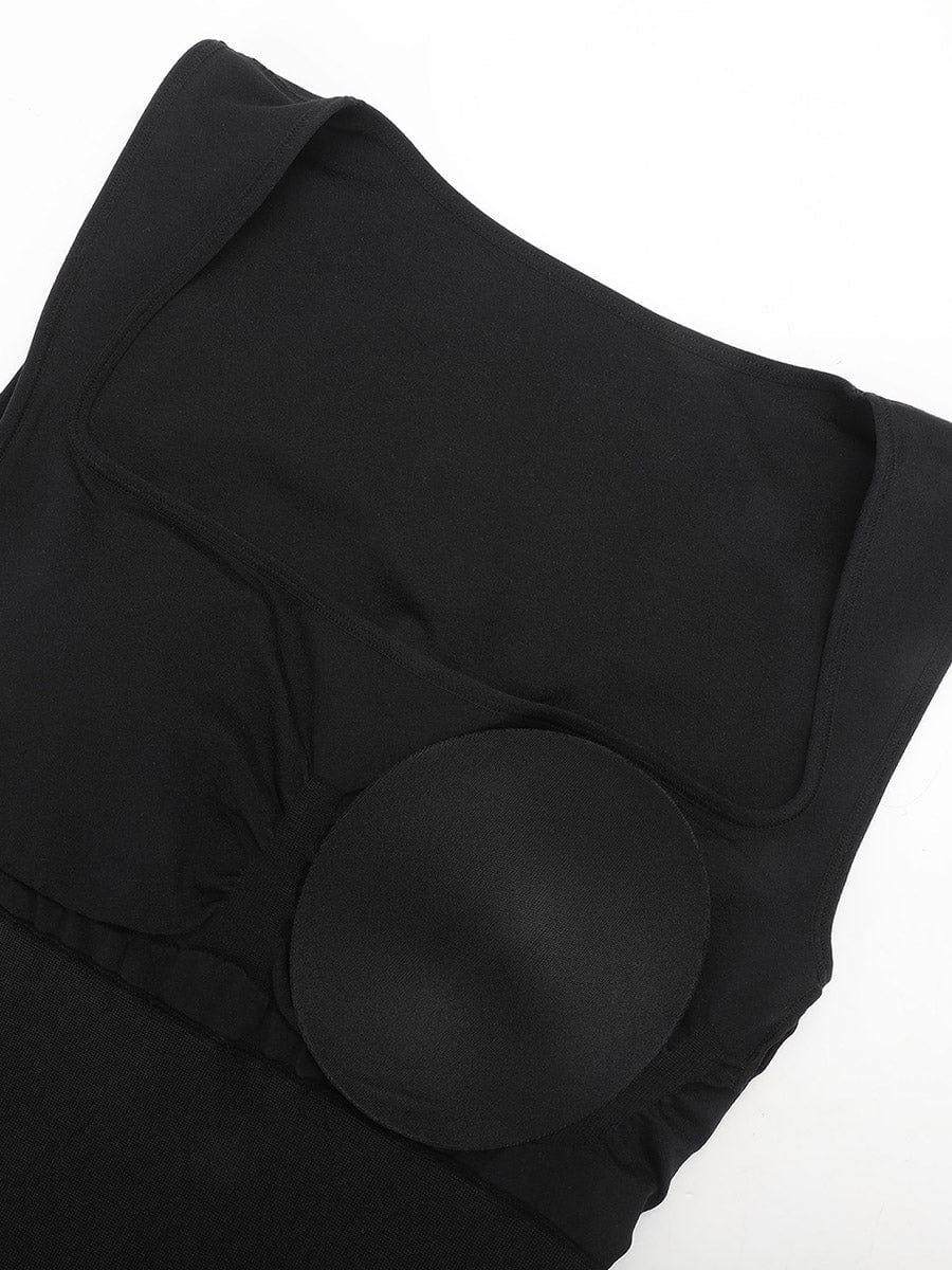 אזור החזה בנוי בשכבה כפולה עם ריפוד נשלף ותמיכה פנימית, המאפשרת לבישה ללא חזייה תוך שמירה על אחיזה ותמיכה ממוקדת.