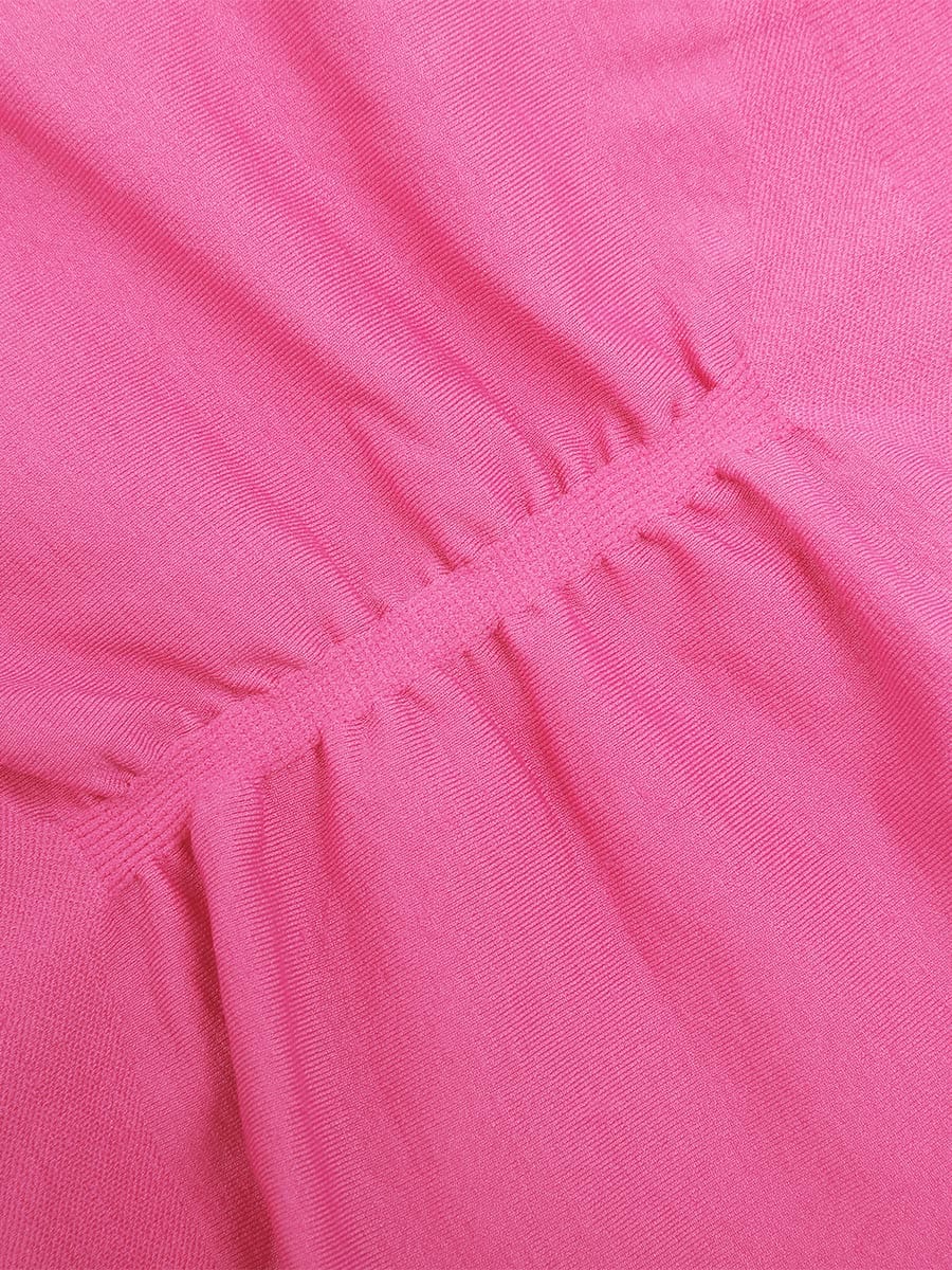 בד סריגה רציף ואלסטי מחטב את אזור הירכיים והישבן, עם איסוף מרכזי שיוצר הרמה מודגשת ומבנה מעוגל.